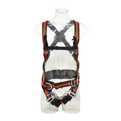 | Descripción: Arnés cuerpo completo con 2 puntos de conexión: dorsal y frontal. Regulación en piernas. Color: Negro-Amarilla |