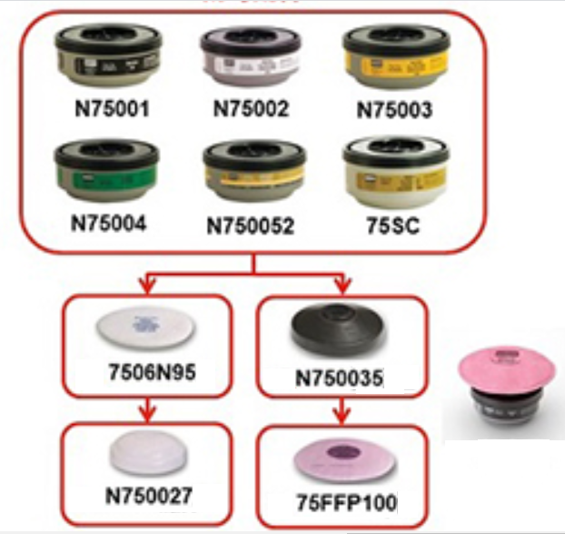 Cartuchos y filtros para usar con medias máscaras de las series 5500 y 7700 y máscaras completas de las series 5400 y 7600.