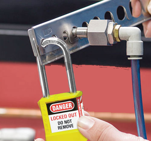 Este bloqueador neumático evita que los accesorios neumáticos macho se conecten a fuentes de aire presurizado. Puede bloquear hasta 6 dispositivos neumáticos.
