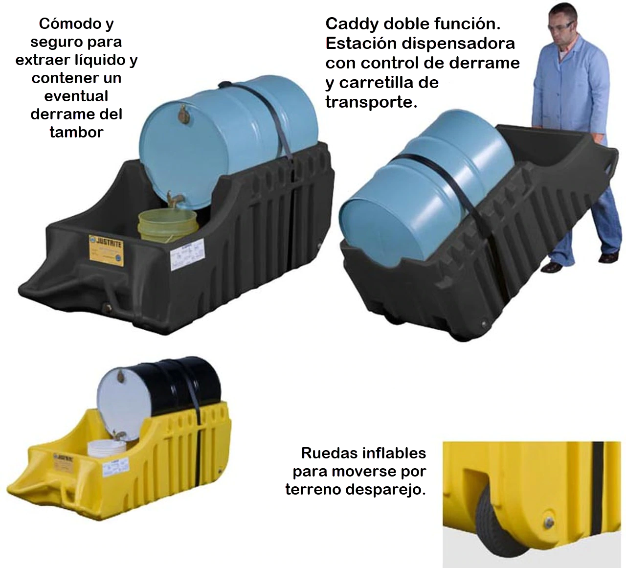 Esta unidad portátil con ruedas permite que una sola persona pueda transportar fácilmente un tambor completo 200 L. Dos correas de tensión sujetan un tambor de forma segura en su lugar. Un sumidero de derrames de 250 L contiene todo tipo de derrames, lo que elimina peligros y molestias. El diseño exclusivo del sumidero abierto hace que la limpieza sea simple y rápida. Su diseño ergonómico con función Inclinado/Parada minimiza la tensión de la espalda y a su vez permite realizar tareas de dispensación sin necesidad de sacar el tambor del caddy. La construcción duradera de polietileno reciclado proporciona la máxima resistencia a la corrosión y protección a prueba de fugas. Color amarillo: 30% material reciclado Carga segura permitida de 567 kg distribuidos en forma uniforme. |