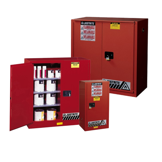 Los gabinetes de almacenamiento de combustibles Sure-Grip® EX tienen las mismas características de calidad que los gabinetes inflamables de Justrite, como se describe a continuación. Diseñados para cumplir con las normas de OSHA y NFPA, los gabinetes Sure-Grip® EX están construidos con acero soldado de doble pared resistente de calibre 18 de espesor con 38 mm de espacio de aire aislante para resistencia al fuego. Las puertas de alto rendimiento con cierre automático se cierran de forma fácil y segura para una máxima protección en caso de incendio. El mecanismo de cierre a prueba de fallas garantiza que el sistema de cierre de bala de acero inoxidable de tres puntos funcione en todo momento. Para mayor seguridad, la manija U-Loc ™ viene con una cerradura de cilindro y un juego de llaves o acepta un candado opcional. Las etiquetas de advertencia reflectantes Haz-Alert ™ son muy visibles en condiciones de incendio o durante cortes de energía cuando se iluminan con una linterna. Los estantes de acero galvanizado SpillSlope® patentados dirigen los derrames a la parte posterior y al fondo de un sumidero a prueba de fugas. Se ajustan en centros de 76 mm para un almacenamiento versátil. Las puertas de cierre manual se abren en 180 grados y se traban automáticamente cuando se cierran. Todos los estilos de puertas cumplen con OSHA y NFPA 30; Los estilos de puertas con cierre automático también cumplen con NFPA 1 y el Código Internacional de Incendios. Todos los gabinetes están aprobados por FM y vienen con una garantía de diez años. |