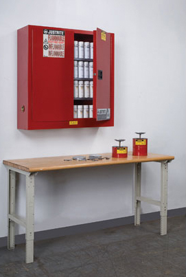 Separe e identifique fácilmente los combustibles de Clase III con estos gabinetes de seguridad rojos. Los estantes ajustables se adaptan a muchas latas de pintura, aerosoles y tintas más pequeñas que se encuentran en las operaciones de impresión, pintura, muebles y vehículos de motor. Tiene capacidad para 168 latas de aerosol e incluye sistema completo de montaje para pared. |
