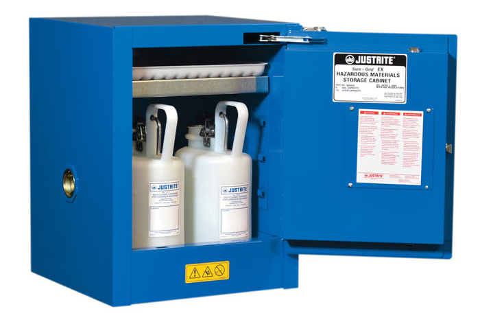 Los gabinetes de compactos y de sobremesa le permiten personalizar sus áreas de trabajo y aprovechar al máximo el espacio disponible. Ya sea que se agreguen al espacio de almacenamiento existente o que los productos químicos estén disponibles en las ubicaciones de las estaciones de trabajo, estos gabinetes de tamaño más pequeño son la solución cuando el espacio es escaso. Los gabinetes de seguridad para materiales peligrosos compactos y de sobremesa tienen las mismas características de calidad que se encuentran en los gabinetes inflamables de Justrite, incluida la construcción de acero soldado de doble pared, calibre 18 (1 mm), sumidero de contención hermético de 2 "(51 mm), ventilaciones dobles, estantes ajustables, Puertas de tres puntos de acero inoxidable con cierre automático tipo bala con manija con candado U • Loc ™ y etiquetas de advertencia reflectantes Haz-Alert ™. Un acabado de pintura en polvo completamente horneado con epoxi, por dentro y por fuera, proporciona una mayor resistencia química. Exclusivo de Justrite, cada gabinete viene con una etiqueta de "Peligroso - Mantenga alejado el fuego", así como un paquete de diez etiquetas específicas de la aplicación para elegir y aplicar al gabinete con el fin de indicar su contenido. |