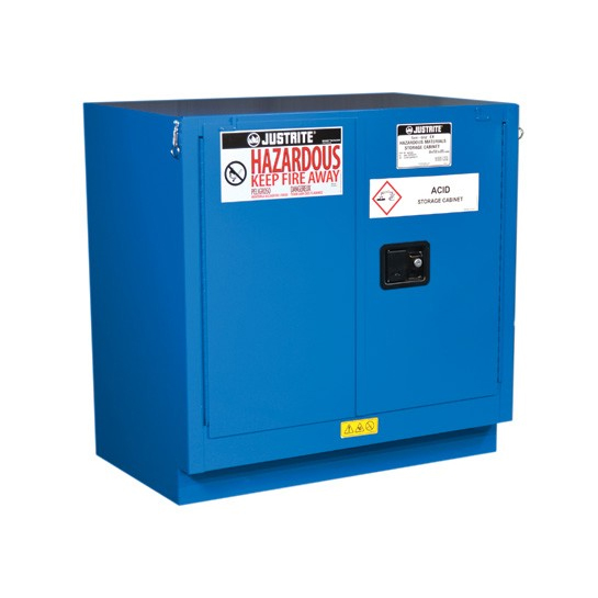 Los gabinetes de seguridad para materiales peligrosos modelo clásico tienen las mismas características de calidad que se encuentran en los gabinetes inflamables de Justrite, incluida la construcción de acero soldado de doble pared, calibre 18 (1 mm), sumidero de contención hermético de 2 "(51 mm), ventilaciones dobles, estantes ajustables, Puertas de tres puntos de acero inoxidable con cierre automático tipo bala con manija con candado U • Loc ™ y etiquetas de advertencia reflectantes Haz-Alert ™. Un acabado de pintura en polvo completamente horneado con epoxi, por dentro y por fuera, proporciona una mayor resistencia química. Exclusivo de Justrite, cada gabinete viene con una etiqueta de "Peligroso - Mantenga alejado el fuego", así como un paquete de diez etiquetas específicas de la aplicación para elegir y aplicar al gabinete con el fin de indicar su contenido. |