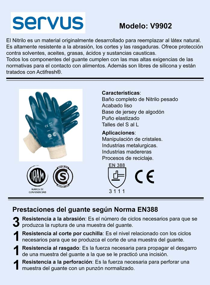 Guante SERVUS Nitrilo pesado puño lona
