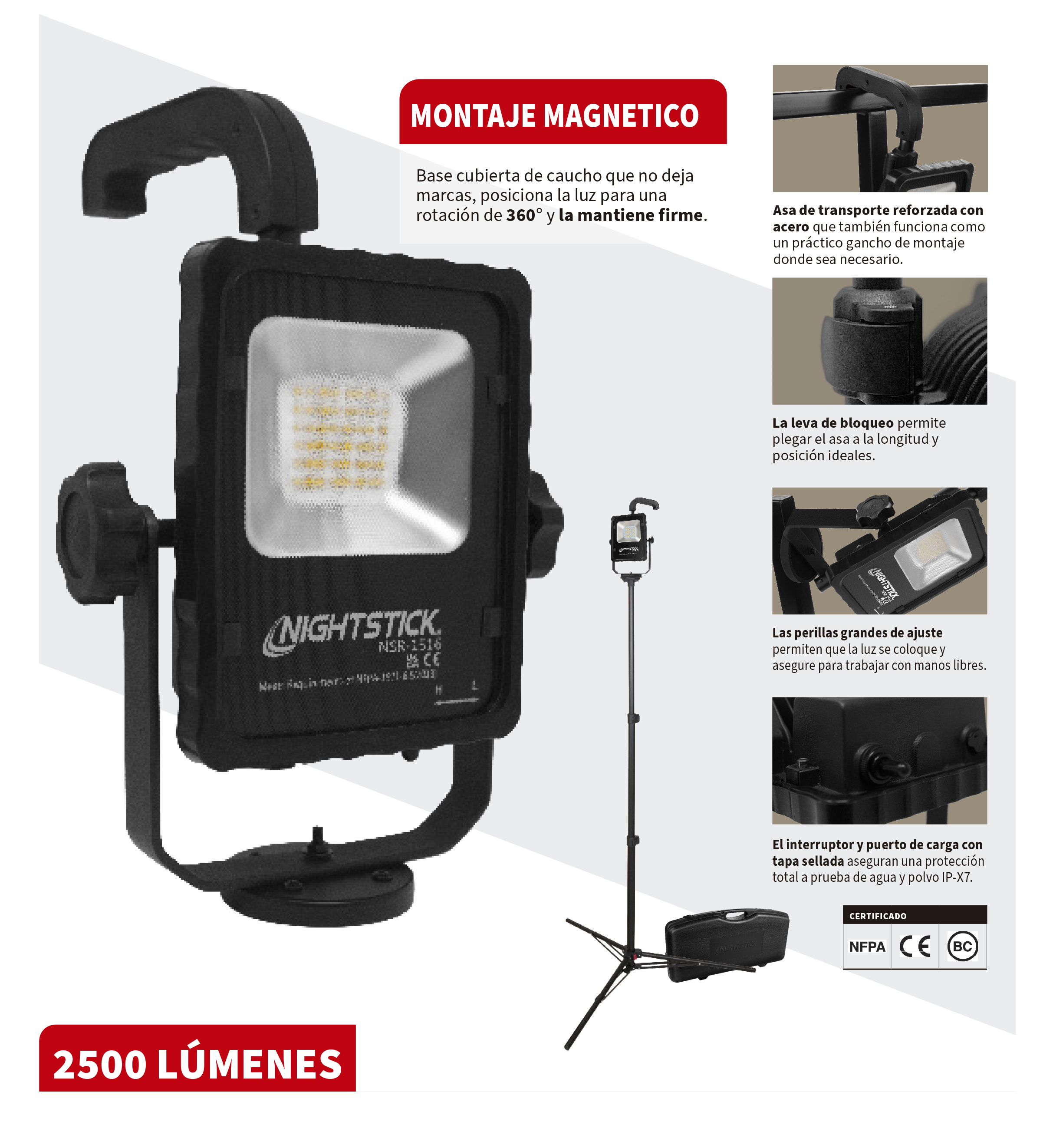 El reflector LED recargable de área con trípode es un kit perfecto cuando la portabilidad es importante.