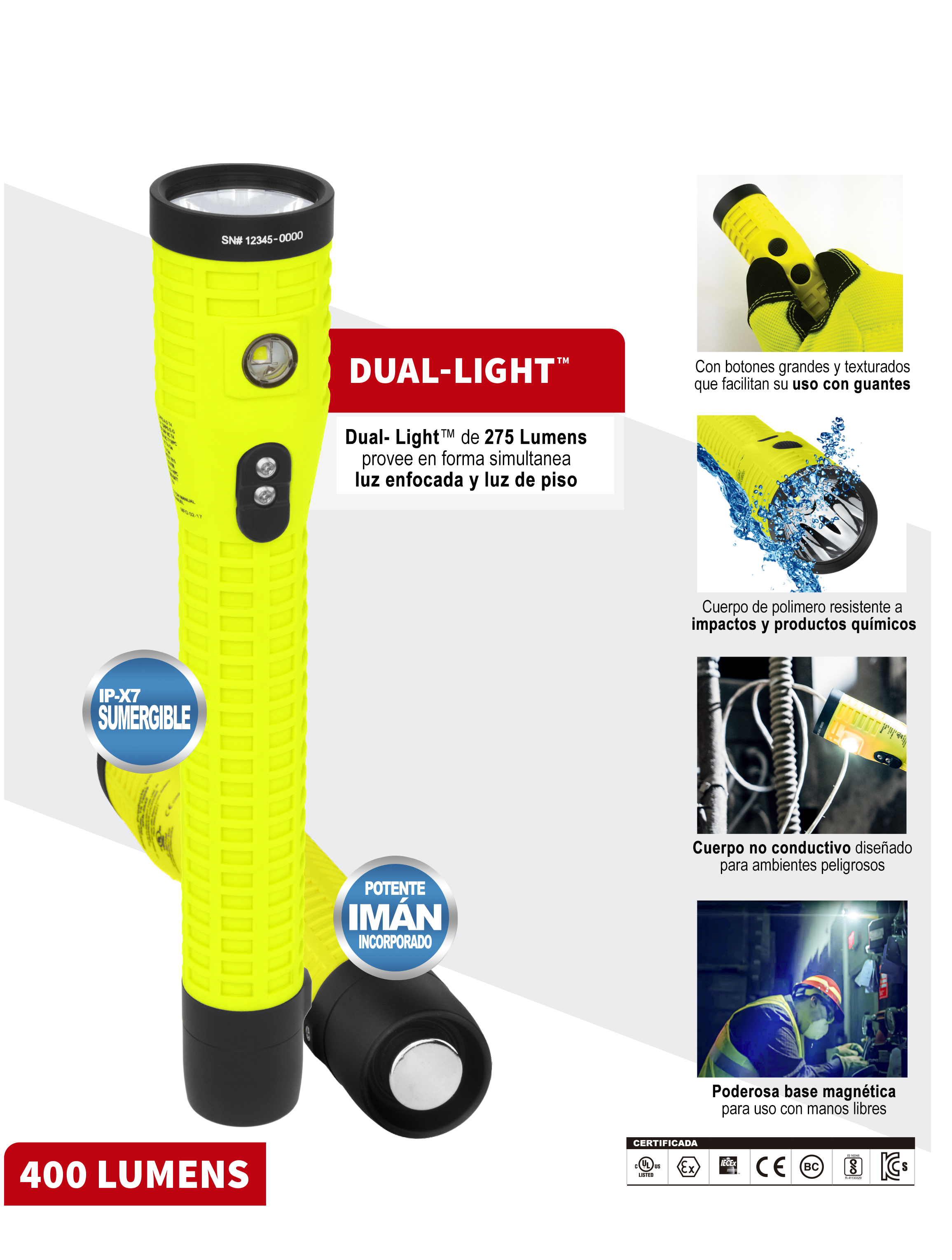La linterna recargable Dual-Light con imán de manos libres es intrínsecamente segura según las normas KOSHA, cULus, ATEX e IECEx Zona 1.