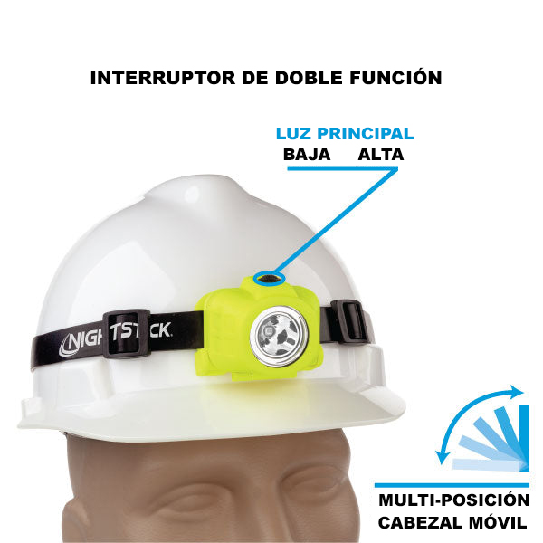 Esta linterna frontal de doble función 3 AAA es cETLus, ATEX Zona 0, INMETRO e IECEx intrínsecamente segura.