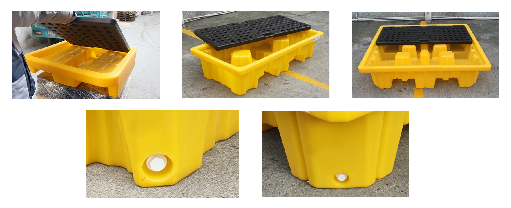 Son ideales para almacenar tambores de 110 o 200 litros (30 o 55 gal), y el drenaje incorporado también ayuda a eliminar cualquier derrame acumulado con facilidad.