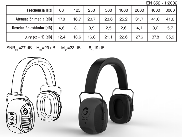 - Diseño ergonómico y adaptable a la mayoría de los usuarios. Compuesto por dos copas en material plástico, revestidas con almohadillas acolchadas en los laterales, confortable aún en jornadas prolongadas.