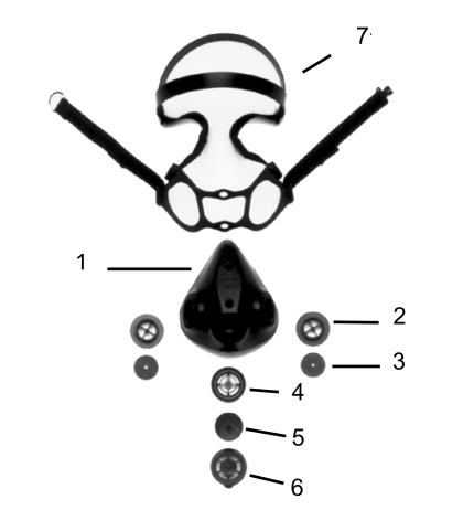 Composición del material La semi máscara North 7700 no contienen látex Pieza Facial 7700 máscara 100% silicona, grado médico Conectores de cartucho Polipropileno Válvula de inhalación Caucho Válvula de exhalación Caucho Asiento de la válvula de exhalación Óxido de polifenileno Protección de la válvula de exhalación Poliisopreno Arnés de suspensión Correas Polietileno Correas superiores de la cabeza Nylon, tejido elástico Correas inferiores de la cabeza Nylon, tejido elástico con banda reflectante Horquilla Polietileno Gancho y ojo Polipropileno Pasador Polietileno El peso no incluye cartuchos ni filtros 7700 Media máscara 4.48 oz. (130 gramos) Dimensiones y pesos de envío 12 máscaras por caja Peso de la media máscara 7700: 3.6kg. Dimensiones: 546mm x 368mm x 203mm |