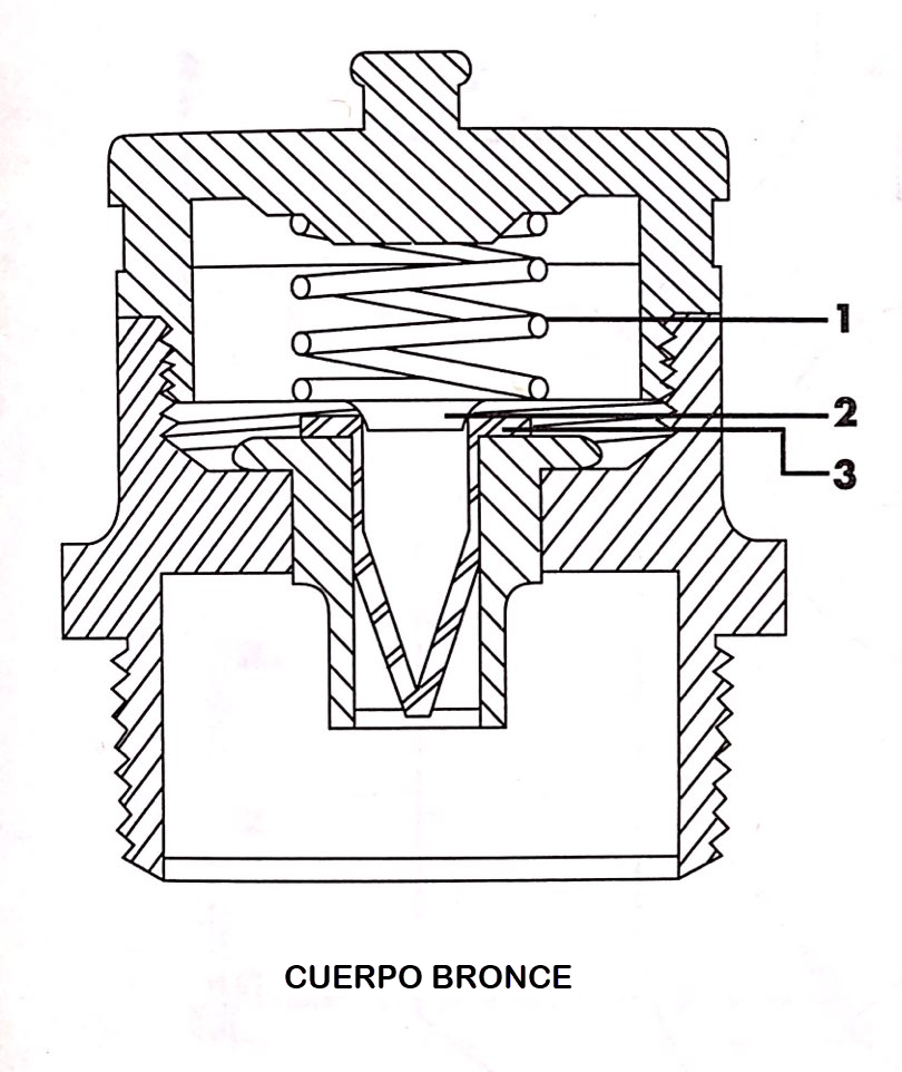 ![]() 1. Resorte - 2.Retenedor Resorte - 3.Asiento Válvula (Goma Buna) |