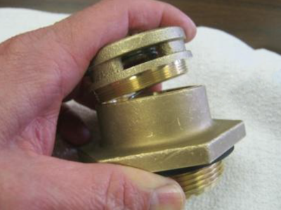 1) Retire la tapa (se recomienda llave de cadena) de la base de la brida. Tenga cuidado de no estropear el bronce. |
